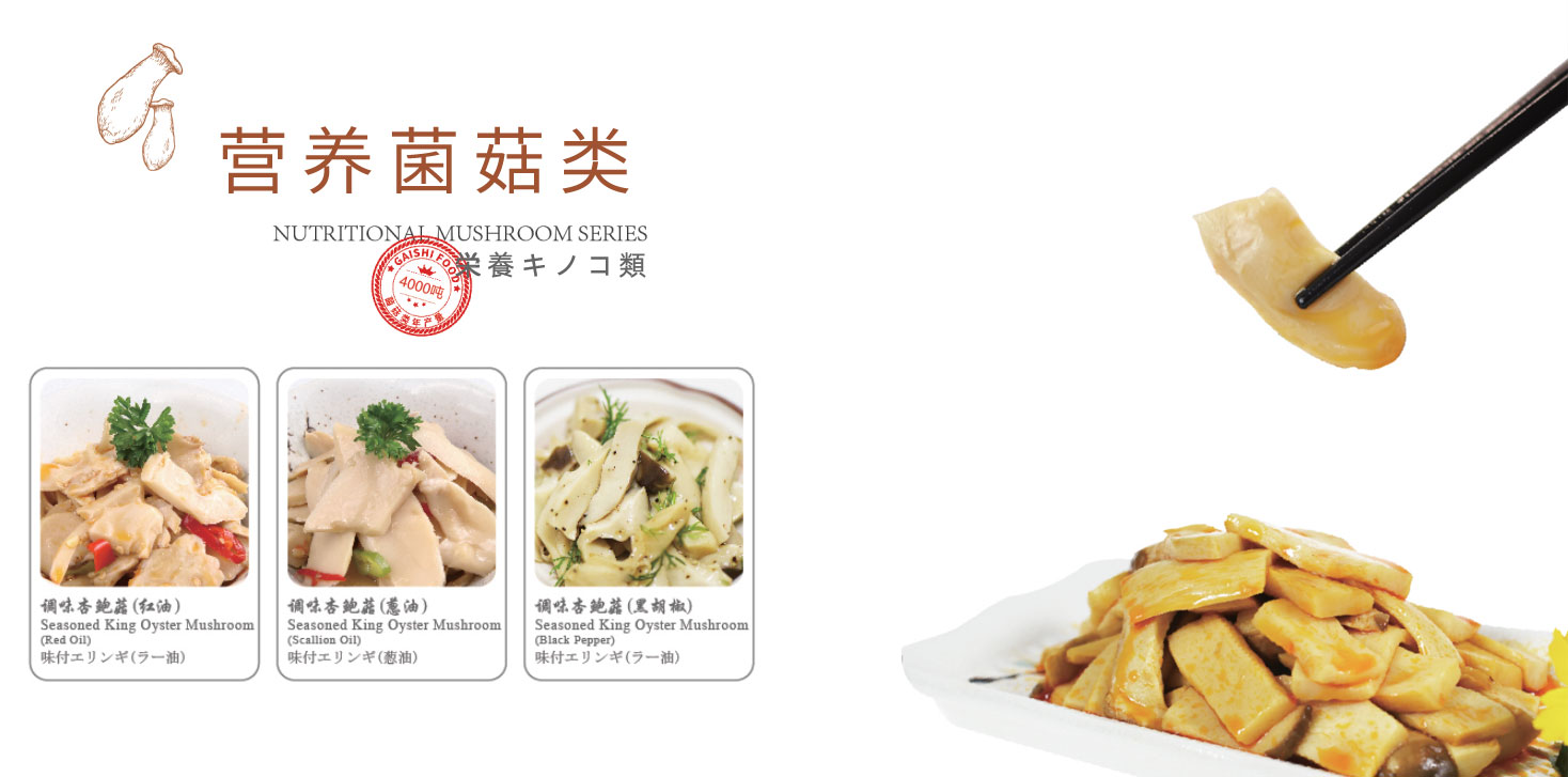 盖世食品股份有限公司是以海藻、食用菌、鱼籽等系列海珍品为主要食材,为国内、外餐饮企业提供定制化凉菜的高新技术企业。